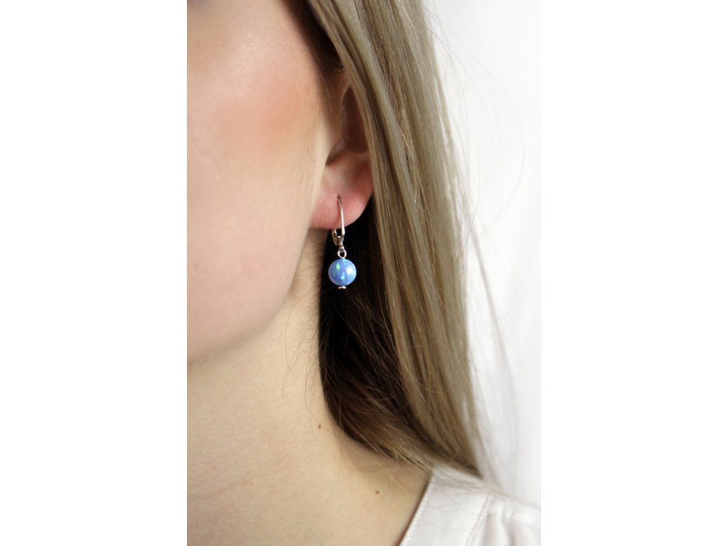 Stříbrné náušnice s modrou ketlovanou opálovou kuličkou (Stříbro 925/1000)