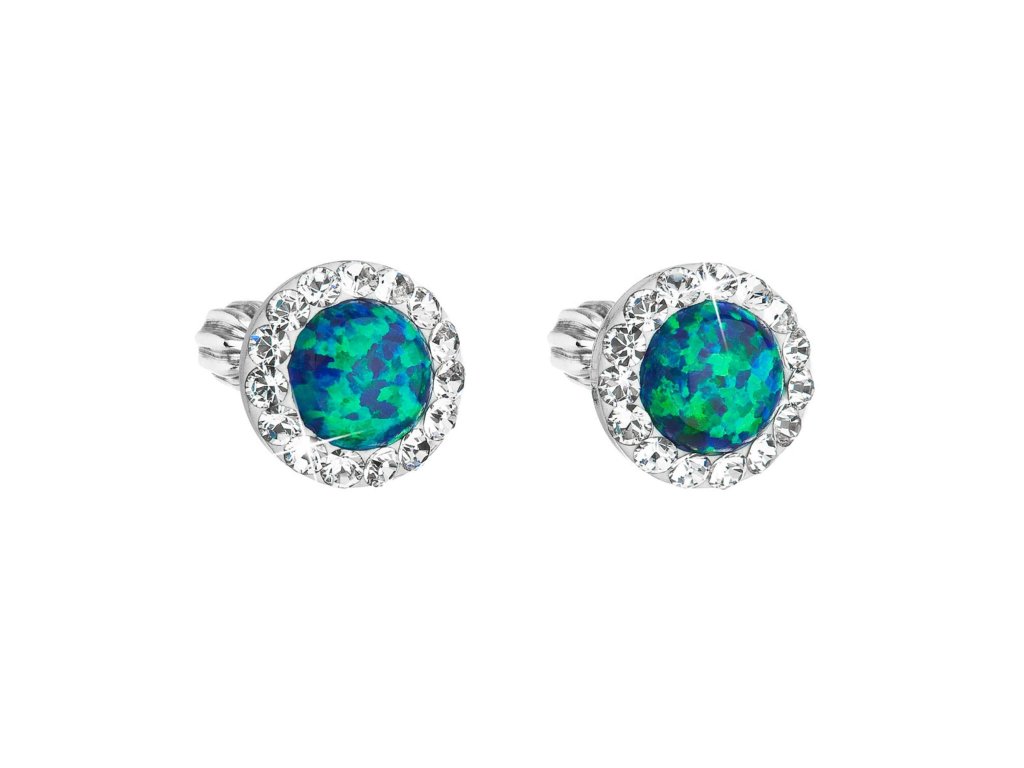 Stříbrné náušnice s opálem a krystaly Preciosa 31317.1 zelené