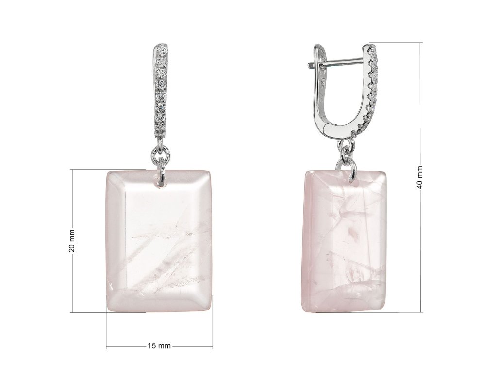 Náušnice jsou vyrobeny ze stříbra té nejvyšší kvality, ryzosti 925/1000. Povrch náušnic je ošetřen rhodiovou úpravou, která chrání šperk proti zčernání i poškrábání, a navíc propůjčuje šperku dokonalý lesk. Výrazný obdélníkový design náušnic přináší moderní a elegantní vzhled, který okamžitě upoutá pozornost. Dominantní jemně růžový růženín dodává náušnicím romantický charakter. Jemné zirkony lemující zapínání zajistí šperku luxusní třpyt. Zapínání na ruský patent zajišťuje pohodlné a bezpečné nošení.