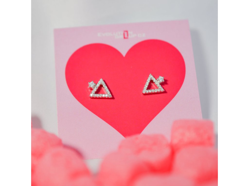 Už Vás omrzely klasická kulaté nebo oválné náušnice? Vyzkoušejte něco nového! Co třeba stříbrné náušnice se zirkony ve tvaru trojúhelníčků?