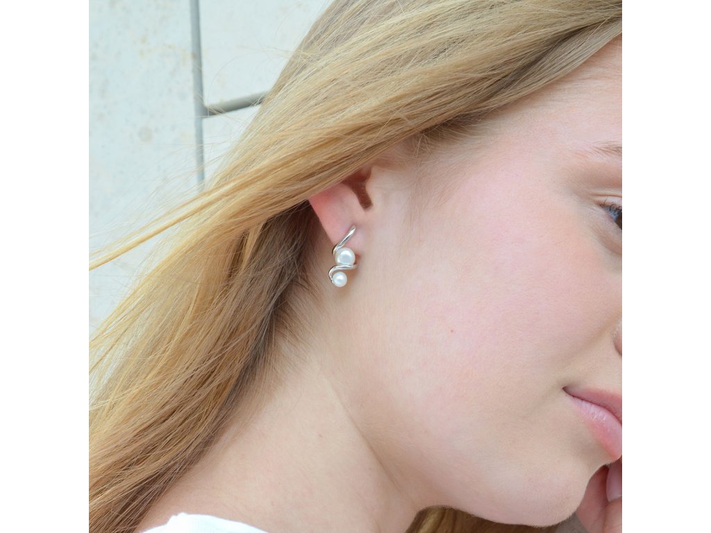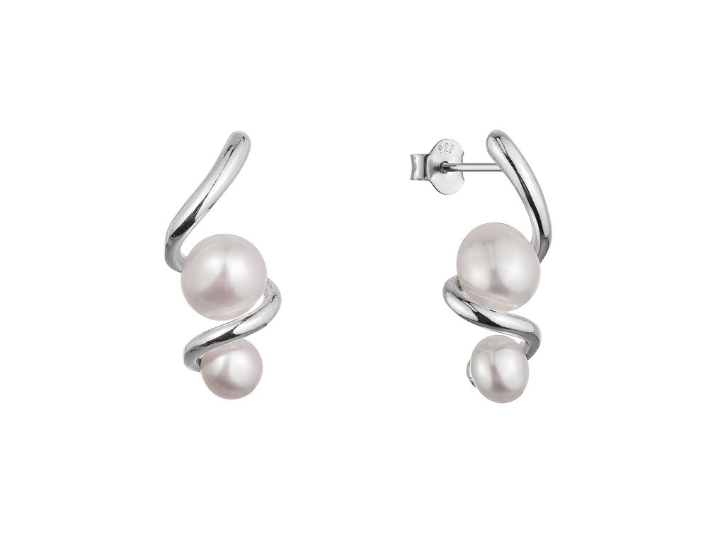 Elegantní stříbrné náušnice ve tvaru spirálky, které zdobí dvě perličky jsou neodolatelné.