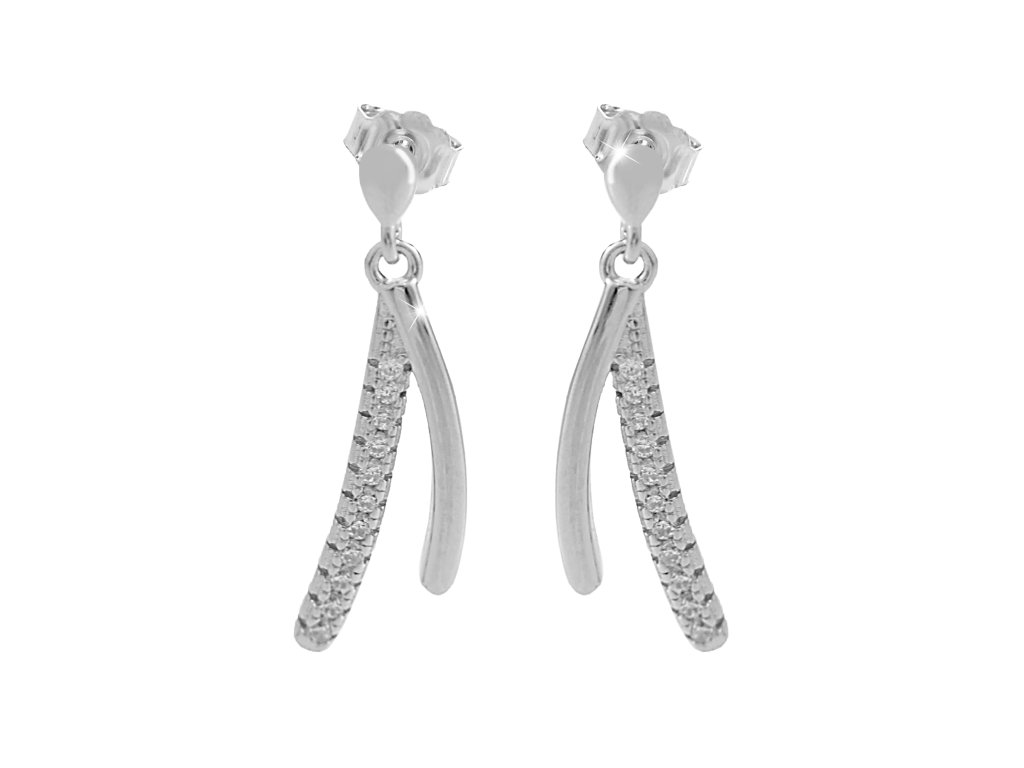 Stříbrné náušnice visací dva prohnuté proužky s Kubickými zirkony Crystal (Stříbro 925/1000)
