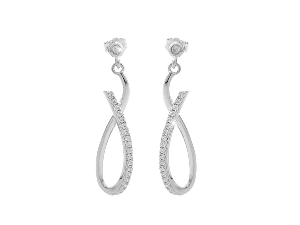 Stříbrné náušnice visací podlouhlá smyčka s Kubickými zirkony Crystal (Stříbro 925/1000)