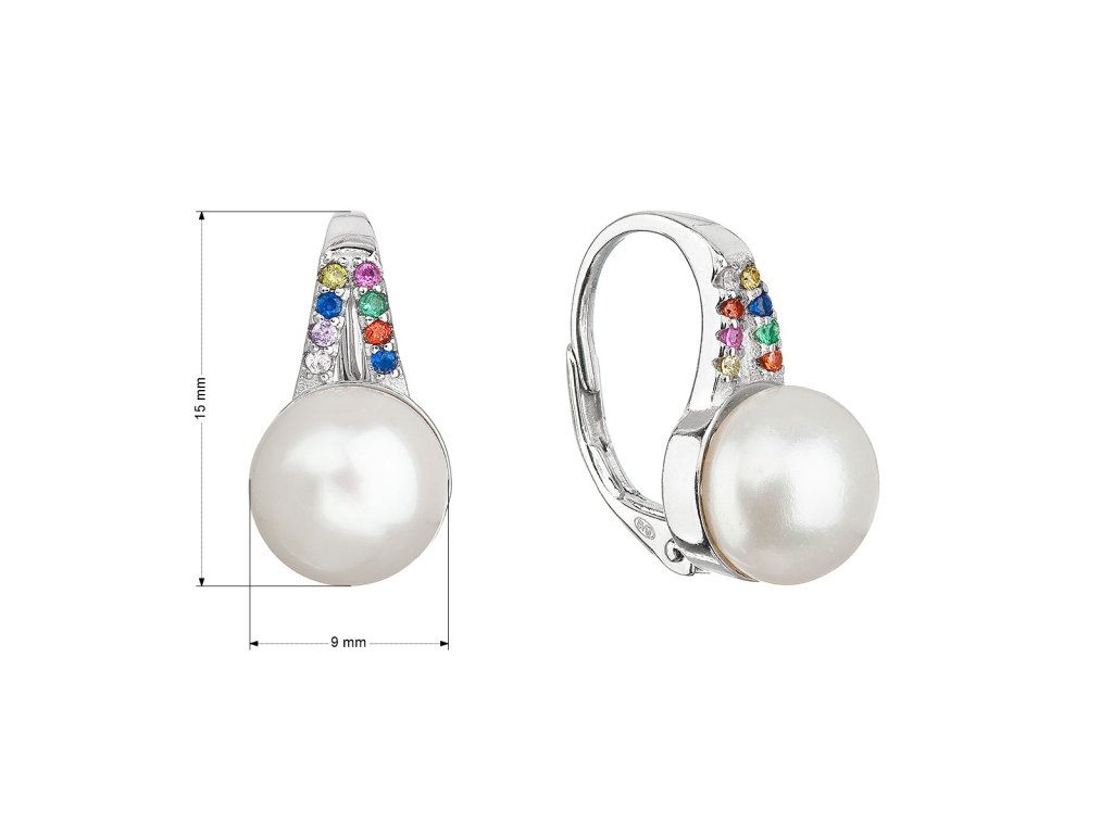 Parametry stříbrných visacích náušnic s bílou říční perlou a multi zirkony 21070.3 multi