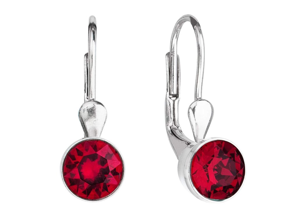 Náušnice jsou vyrobeny ze stříbra o ryzosti 925/1000 s povrchovou úpravou rhodiem a jsou zdobeny kulatým Swarovski krystalem v rudé barvě. Náušnice zapnete na klapku, která je spolehlivě ochrání proti nechtěné ztrátě. Do náušnic není přidán nikl, a tak je bez obav mohou nosit i alergici.