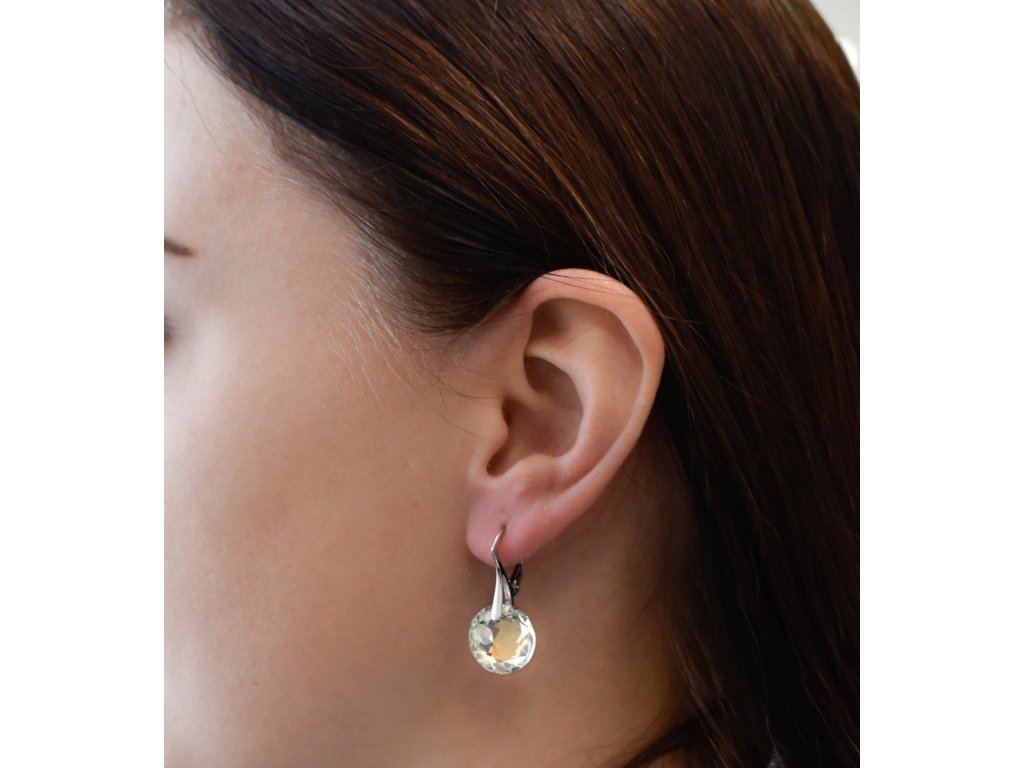 Buďte veselá a okouzlující každým dnem! Kulaté náušnice s AB Swarovski krystalem se blyští na všechny strany.