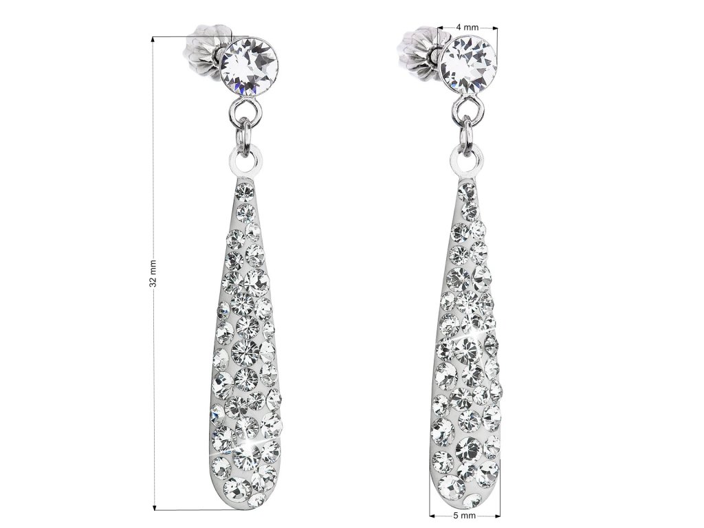 Stříbrné náušnice visací s krystaly Swarovski bílá slza 31163.1
