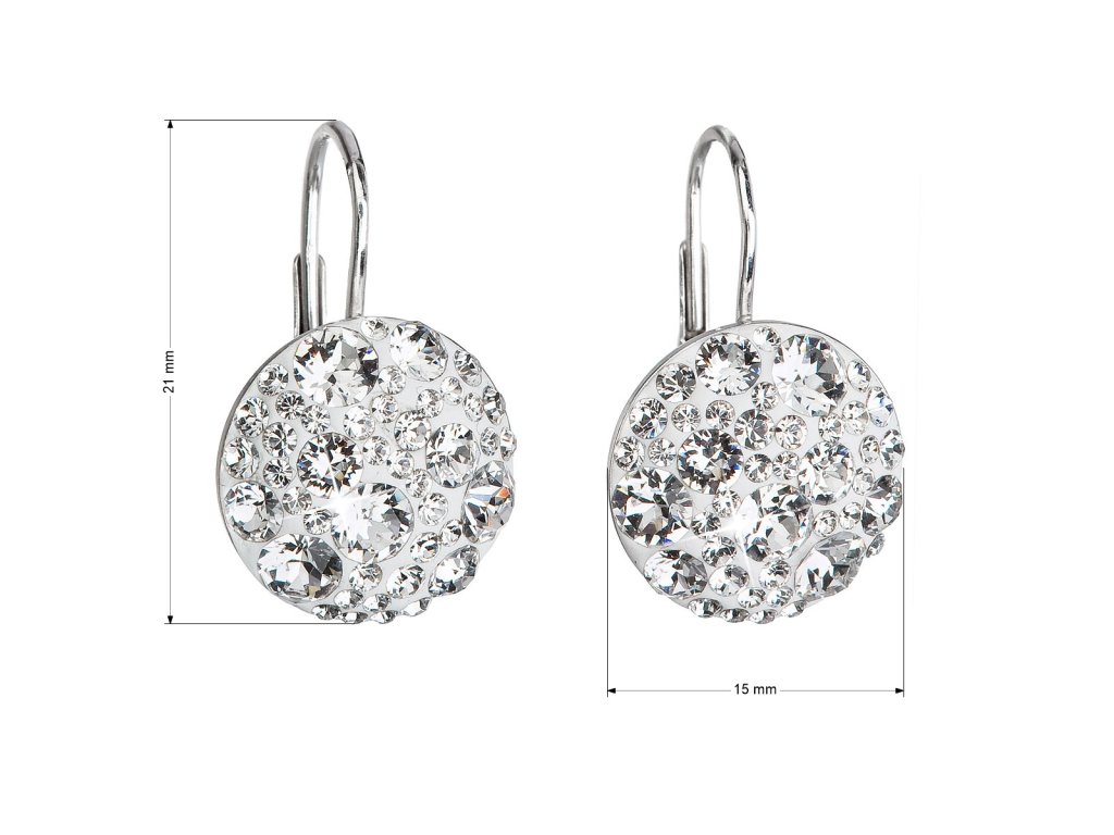 Parametry stříbrných visacích náušnic s krystaly Swarovski bílé kulaté 31176.1