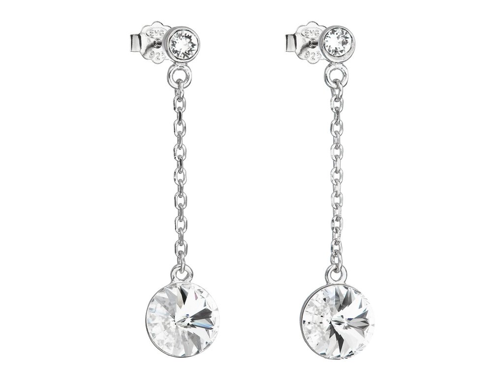 Stříbrné náušnice visací s krystaly Swarovski bílé kulaté 31270.1
