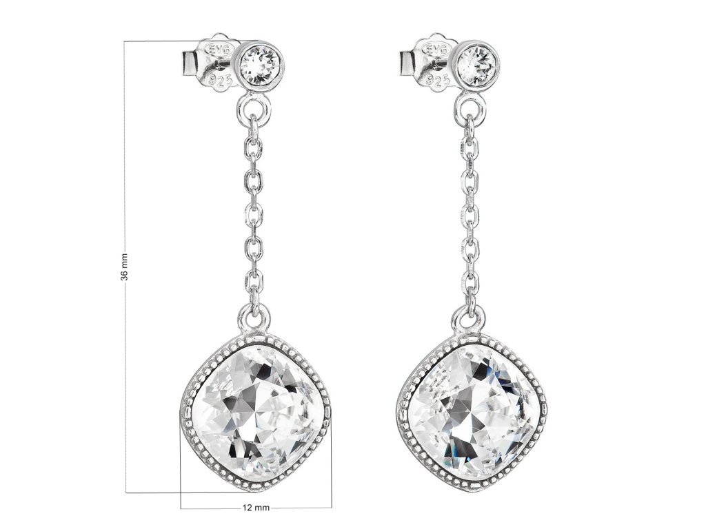 Parametry stříbrných visacích náušnic s krystaly Swarovski bílý kosočtverec 31271.1