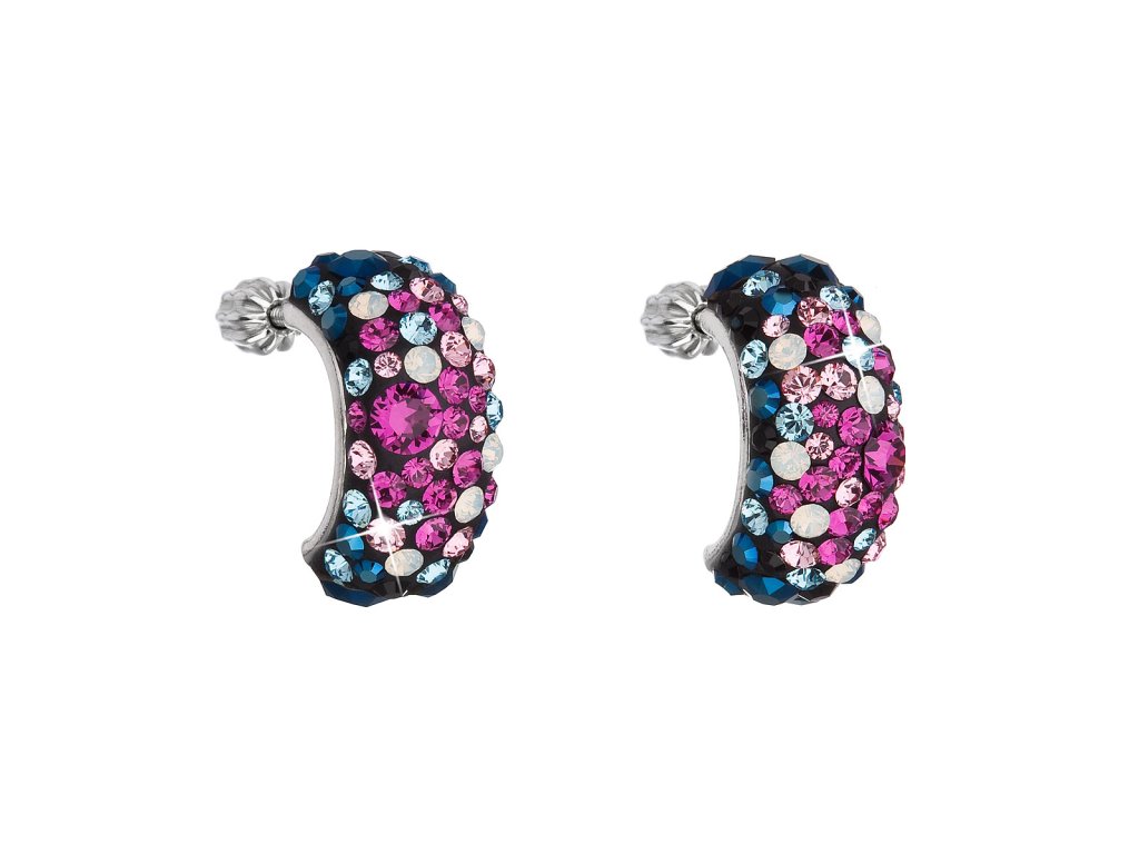 Stříbrné náušnice visací s krystaly Swarovski mix barev půlkruh 31164.4 galaxy