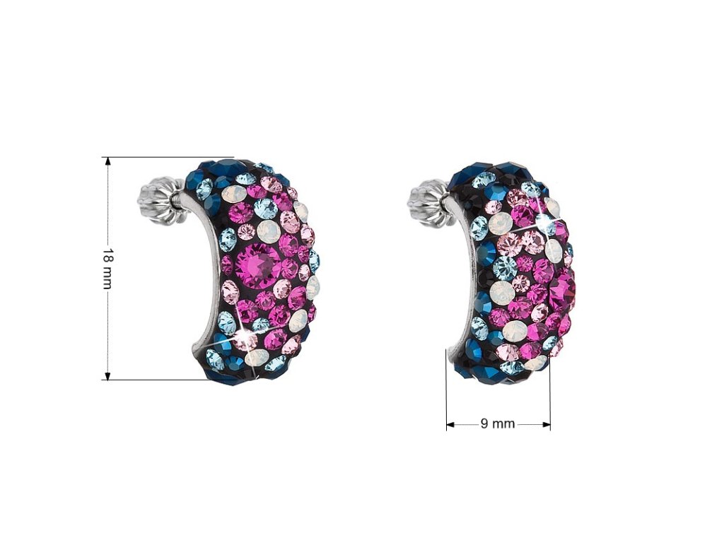 Parametry stříbrných visacích náušnic s krystaly Swarovski mix barev půlkruh 31164.4 galaxy