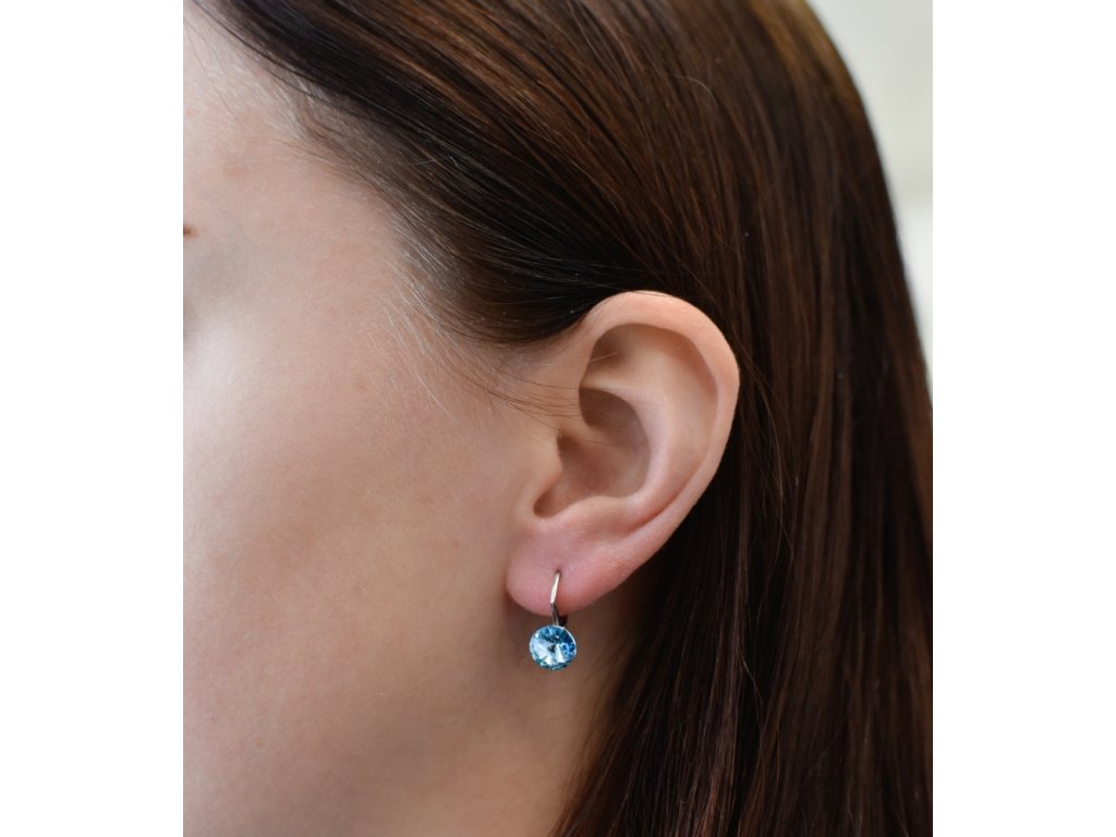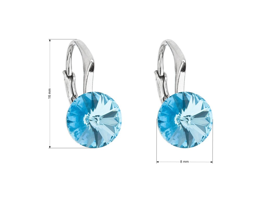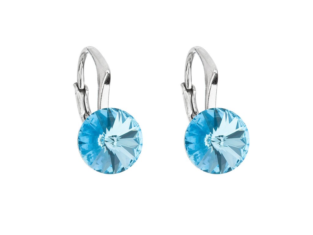 Stříbrné náušnice visací s krystaly Swarovski modré kulaté 31229.3 aqua