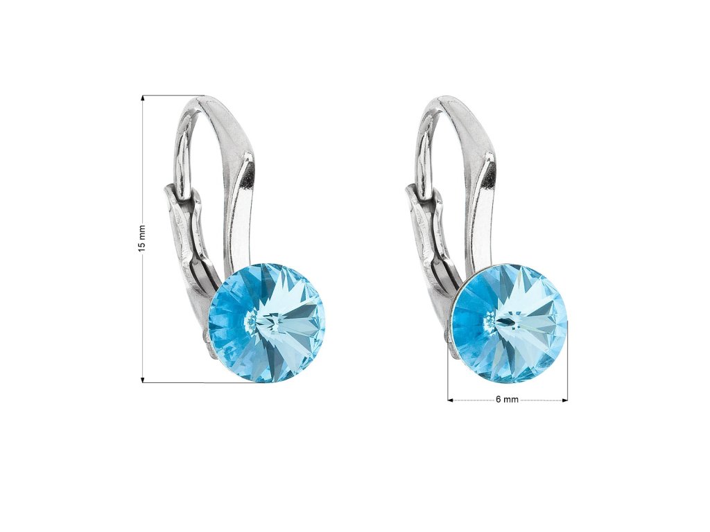 Parametry stříbrných visacích náušnic s krystaly Swarovski modré kulaté 31230.3 aquamarine