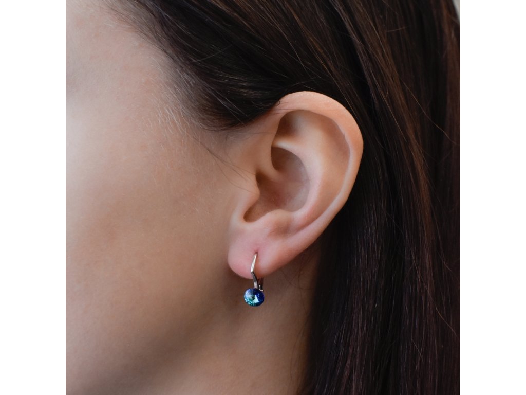 Jednoduché, malé a elegantní, přesně takové jsou oblíbené visací stříbrné náušnice 31230.5 bermuda blue se Swarovski krystaly.Náušnice jsou vyrobeny ze stříbra o ryzosti 925/1000 s povrchovou úpravou rhodiem a jsou zdobeny 6 mm širokým kulatým Swarovski krystalem v modré barvě. Náušnice zapnete na klapku, která je spolehlivě ochrání proti nechtěné ztrátě. Do náušnic není přidán nikl, a tak je bez obav mohou nosit i alergici.