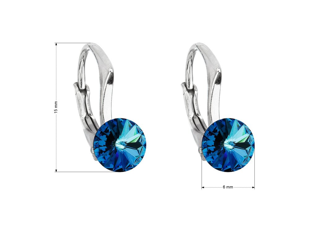 Parametry stříbrných visacích náušnic s krystaly Swarovski modré kulaté 31230.5 bermuda blue