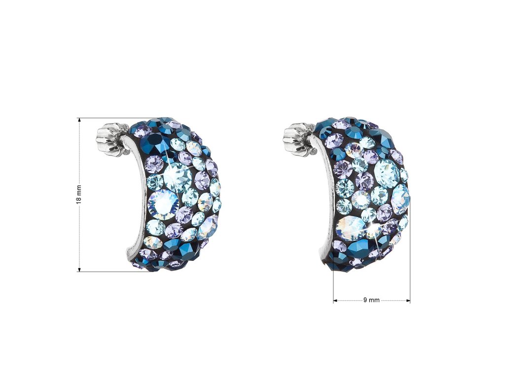 Parametry stříbrných visacích náušnic s krystaly Swarovski modré půlkruh 31164.3 blue style