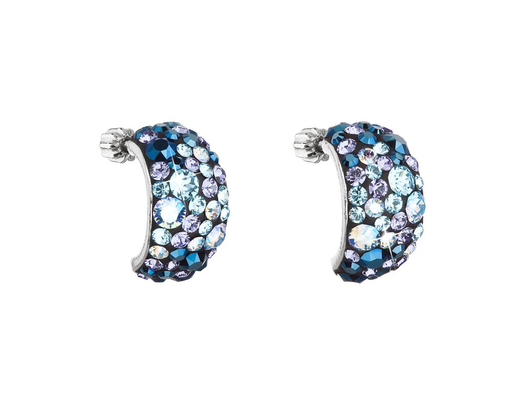 Stříbrné náušnice visací s krystaly Swarovski modré půlkruh 31164.3 blue style