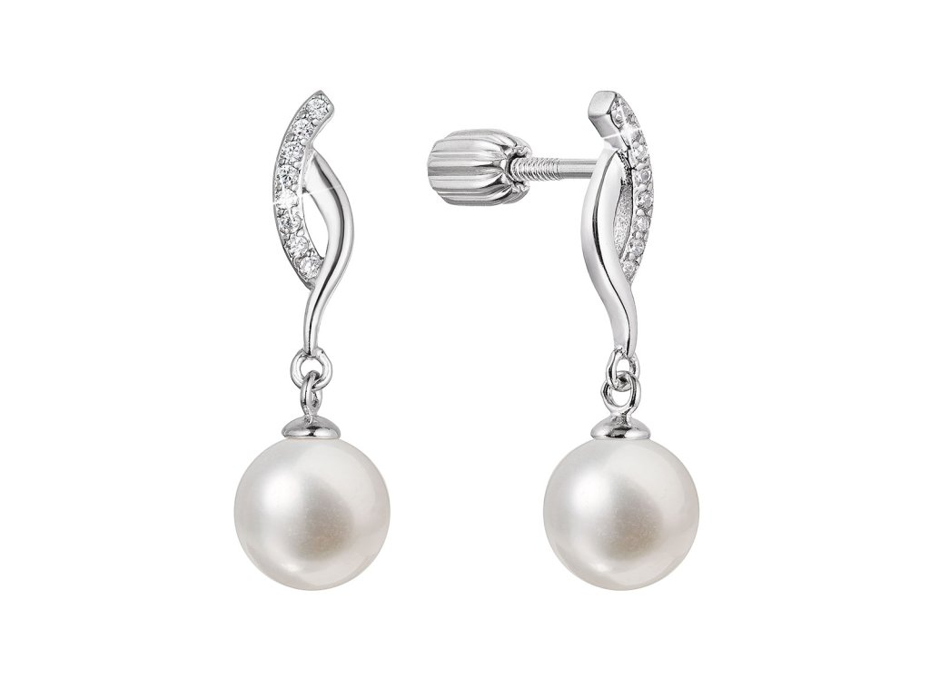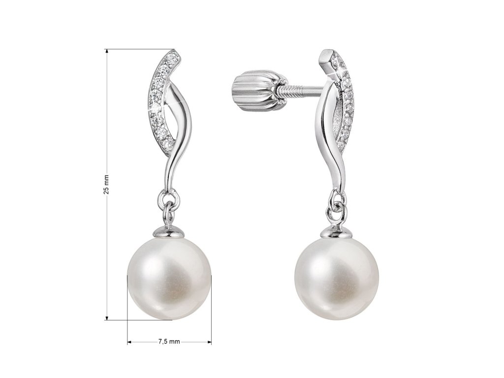 Stříbrné náušnice visací s kulatou říční perlou bílé 21094.1B
