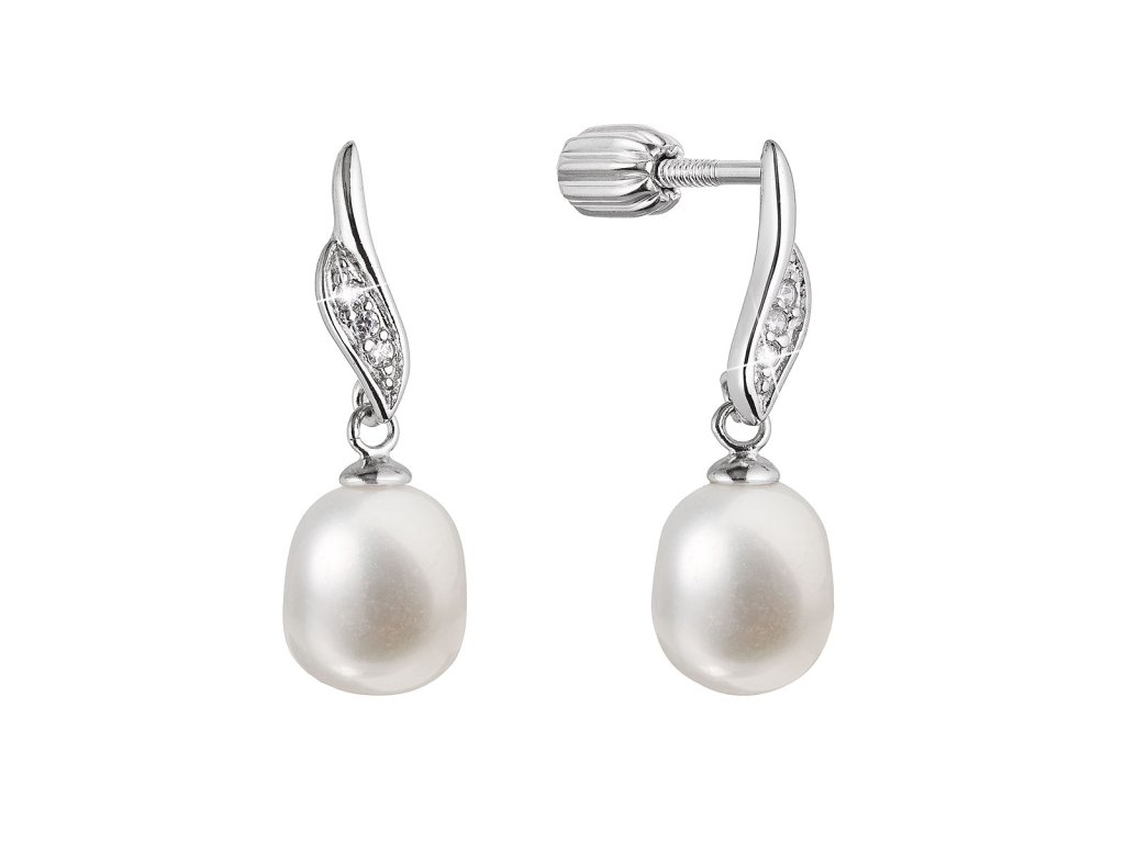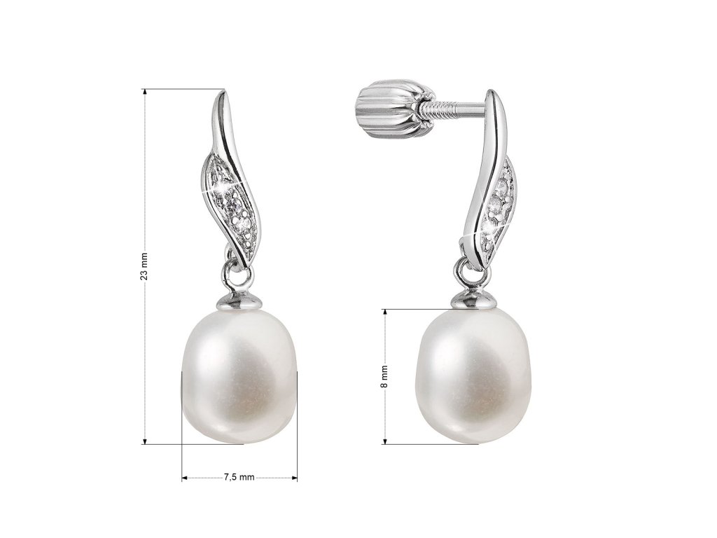 Stříbrné náušnice se třpytivými zirkony a dominantní oválnou říční perlou jsou výrazné.Náušnice 21092.1B jsou vyrobené ze stříbra o ryzosti 925/1000 včetně povrchové úpravy rhodiem. Rhodium ochrání šperk proti zčernání, zežloutnutí i poškrábání. Oválné bílé říční perly jsou kvality AA a mají velikost 8x7,5 mm. Náušnice jsou navíc zdobeny i několika průzračnými zirkony. Šperk neobsahuje přídavek niklu, a tak ho mohou nosit i lidé náchylní k alergické reakci. Náušnice mají zapínání na balónek, který je ochrání proti nechtěné ztrátě.