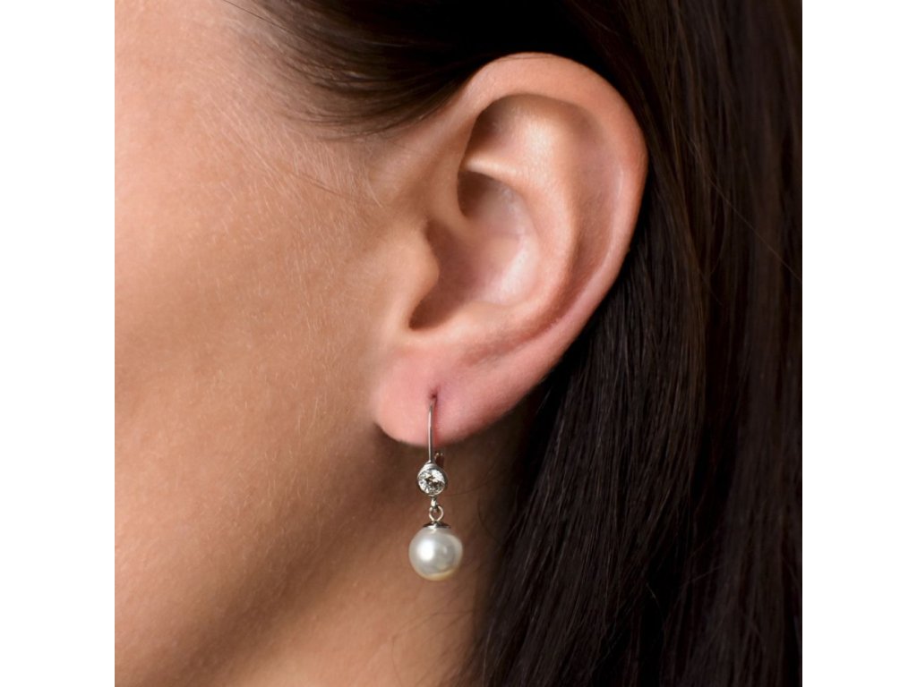 kulatou perlou Swarovski a o něco menším bílým Swarovski krystalem. Náušnice zapnete