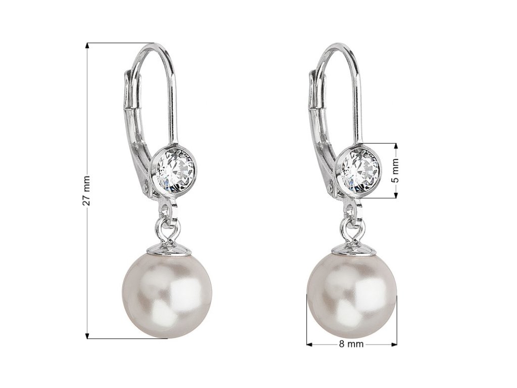 Parametry stříbrných visacích náušnic s perlou Swarovski bílé kulaté 31196.1