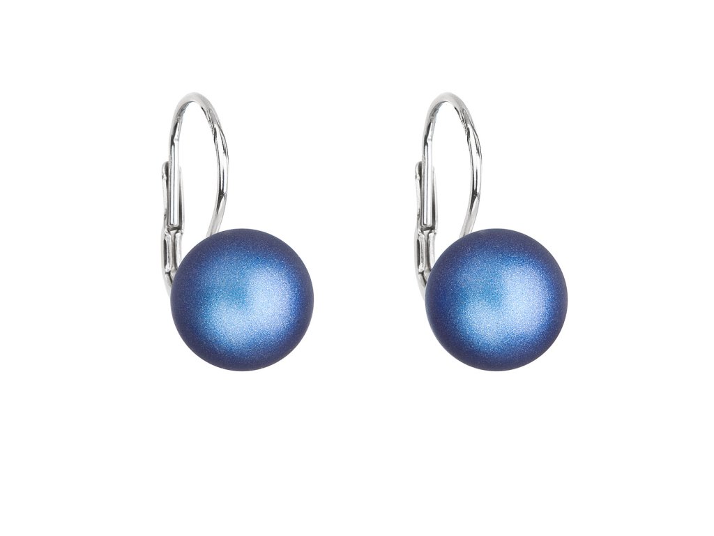 Stříbrné náušnice visací s tmavě modrou matnou Swarovski perlou 31143.3