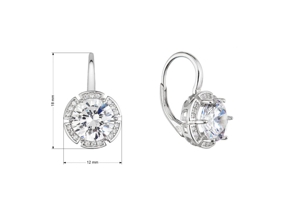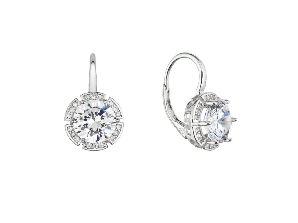 Stříbrné náušnice visací s velkým zirkonem kulaté bílé 11470.1