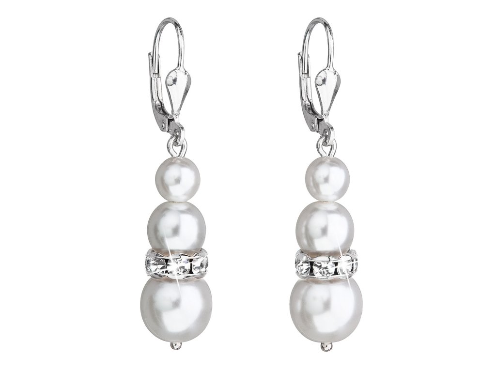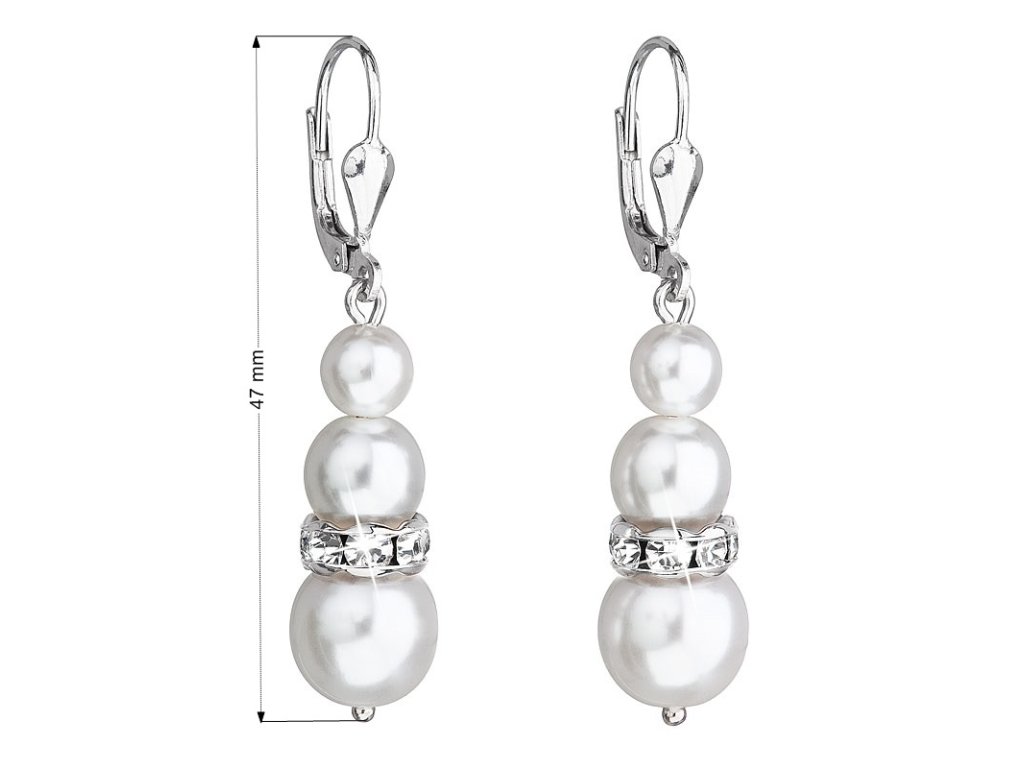 Stříbrné náušnice visací se syntetickými perlami a krystaly Swarovski bílé kulaté 31150.1