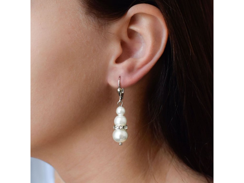 Ozdobte se visacími perlovými náušnicemi se Swarovski krystaly 31150.1 a garantujeme vám, že na plese budete neodolatelná!Dámské visací náušnice 31150.1 jsou vyrobeny ze stříbra o ryzosti 925/1000 včetně povrchové úpravy rhodiem a skládají se ze tří bílých různě velikých kulatých syntetických perel, mezi něž je vsazen ještě ozdobný kroužek se Swarovski krystaly. Třpytivé krystaly jsou v bílé barvě. Náušnice se zapínají na klapku a jelikož neobsahují žádný nikl, mohou je nosit i alergici.