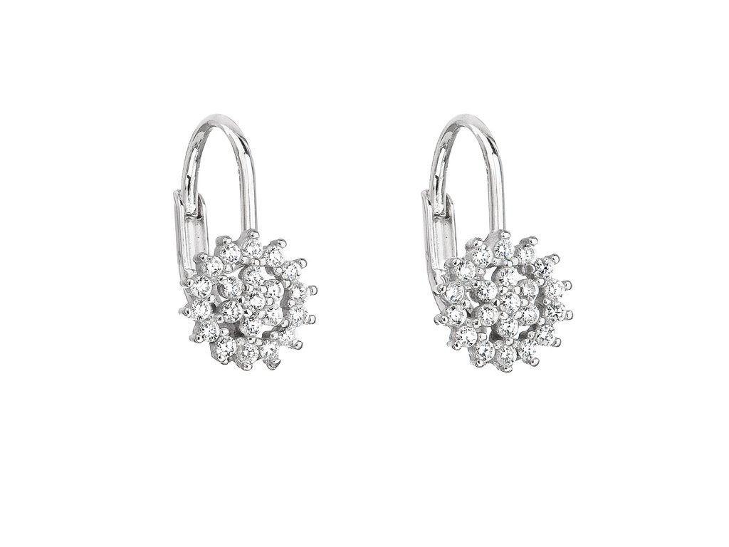 Stříbrné náušnice visací se zirkonem bílá kytička 11217.1