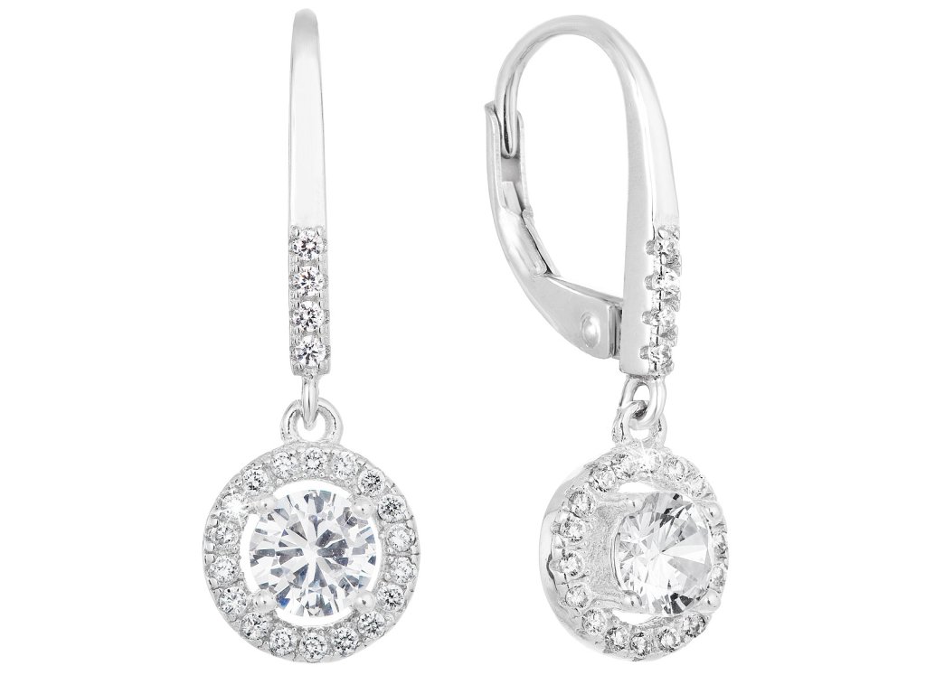 Stříbrné náušnice visací se zirkonem bílé kulaté 11300.1