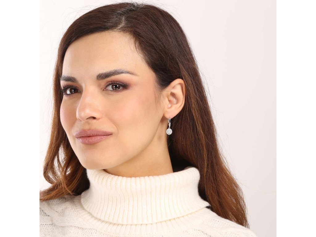 Planeta s prstencem z vás vytvoří vesmírně neodolatelnou.Náušnice visací 11300.1 jsou vyrobeny ze stříbra o ryzosti 925/1000 s povrchovou úpravou rhodiem a jsou zdobeny zirkony v bílé barvě. Rhodium vylepšuje vlastnosti stříbra a chrání šperk proti nehezkým změnám vzhledu. Kruh je osazen jedním zirkonem a prstenec je také zdobem menšími zirkony.