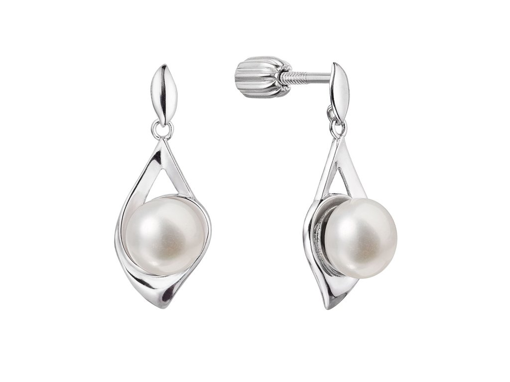 Stříbrné náušnice visací slza s říční perlou bílá 21080.1B