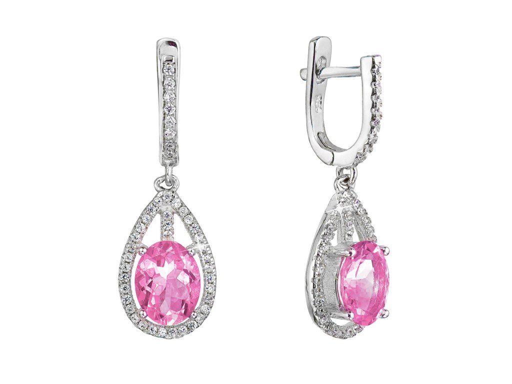 Stříbrné visací náušnice bohatě zdobené čirými zirkony a velkým růžovým zirkonem v jejich středu.Náušnice 11480.3 rose jsou vyrobeny ze stříbra o ryzosti 925/1000 s povrchovou úpravou rhodiem. Dominantním je růžový zirkon. Šperk neobsahuje přídavek niklu, a tak ho mohou nosit i lidé náchylní k alergické reakci. Náušnice mají zapínání na ruský patent, který je ochrání proti nechtěné ztrátě.