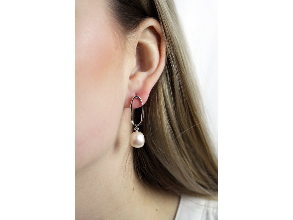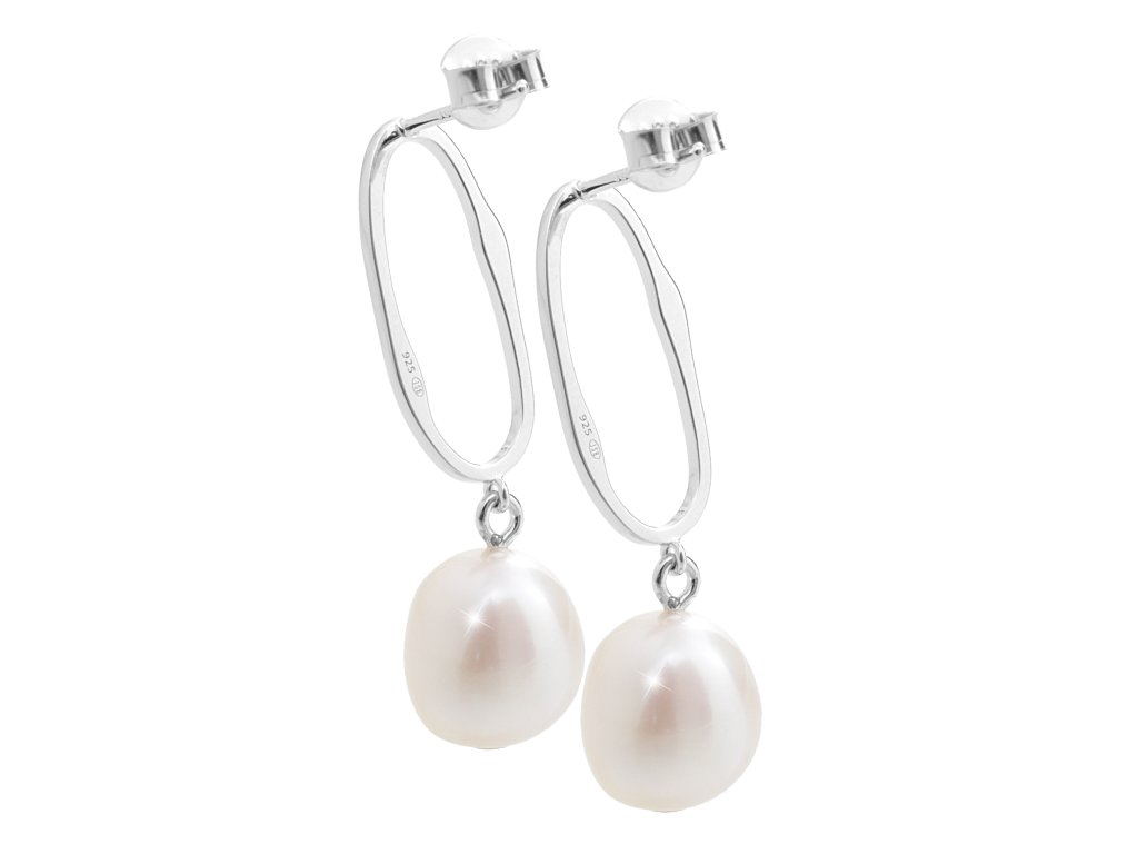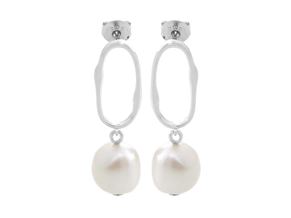Stříbrné náušnice visící s říční perlou na nepravidelném oválu (Stříbro 925/1000)
