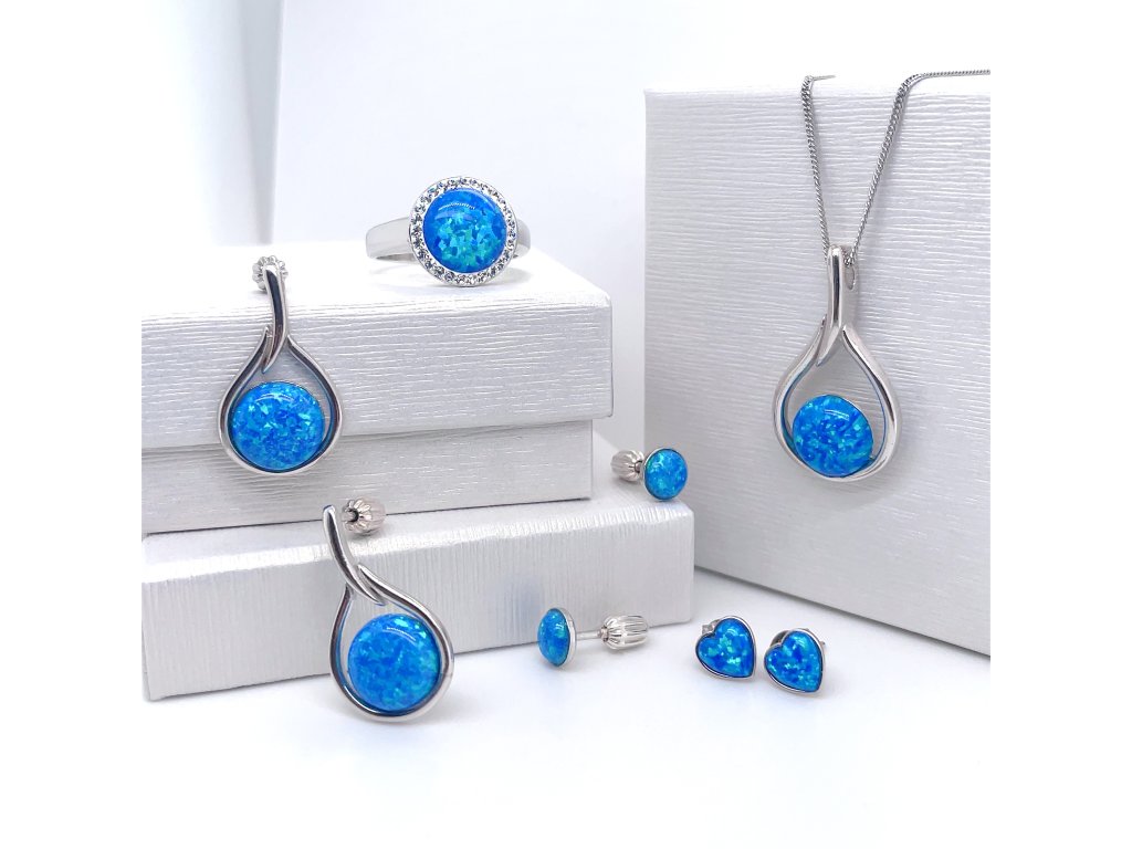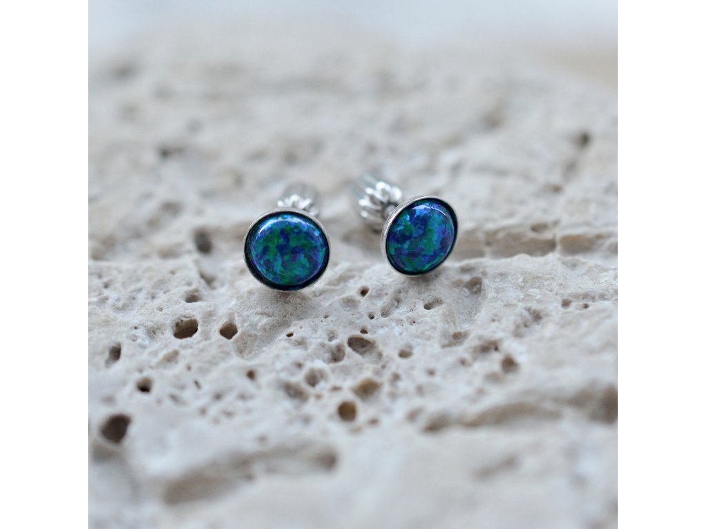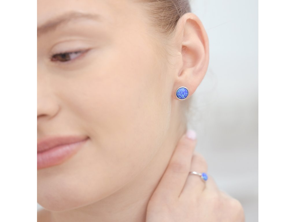 Jemné stříbrné náušnice s modrým opálem potěší všechny, kdo milují čistý design s kapkou neobyčejnosti. Náušnice mají tvar malých koleček, která jsou osazena syntetickým modrým opálem – ten na denním světle hraje duhovými odlesky v tónech modré, tyrkysové, zelené i fialové.