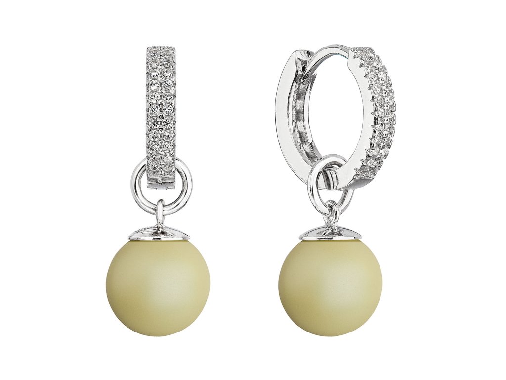 Stříbrné visací náušnice kroužky s pastelově žlutou perlou 31298.3
