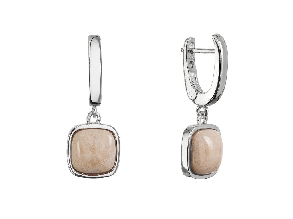 Stříbrné visací náušnice s fosilním korálem 11738.3