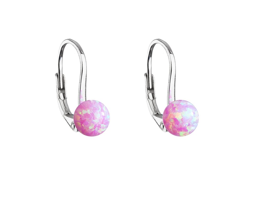 Stříbrné visací náušnice se syntetickým opálem růžové kulaté 11242.3