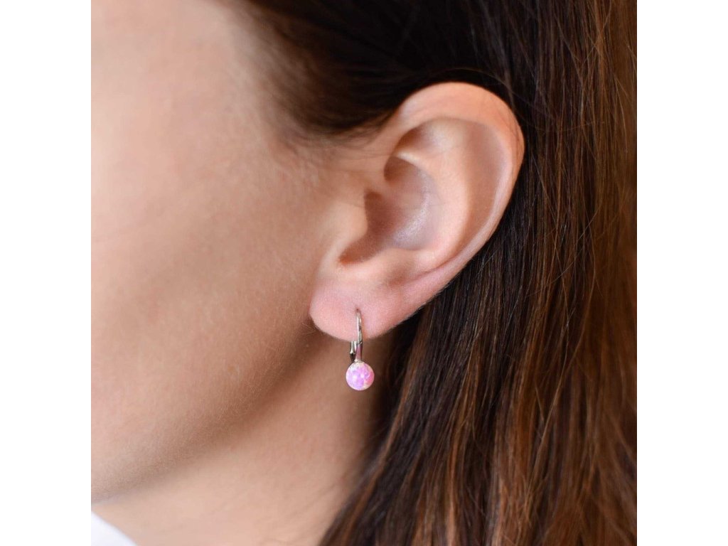 Kulaté visací náušnice tvoříme ze stříbra ryzosti 925/1000, které je upraveno rhodiem. Díky rhodiu je šperk odolný proti zčernání, zežloutnutí nebo poškrábání. Náušnice tvoří jeden kulatý syntetický opál v růžové barvě.
