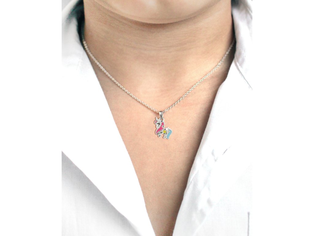 Stříbrný dětský náhrdelník jednorožec s barevným smaltem (Stříbro 925/1000)