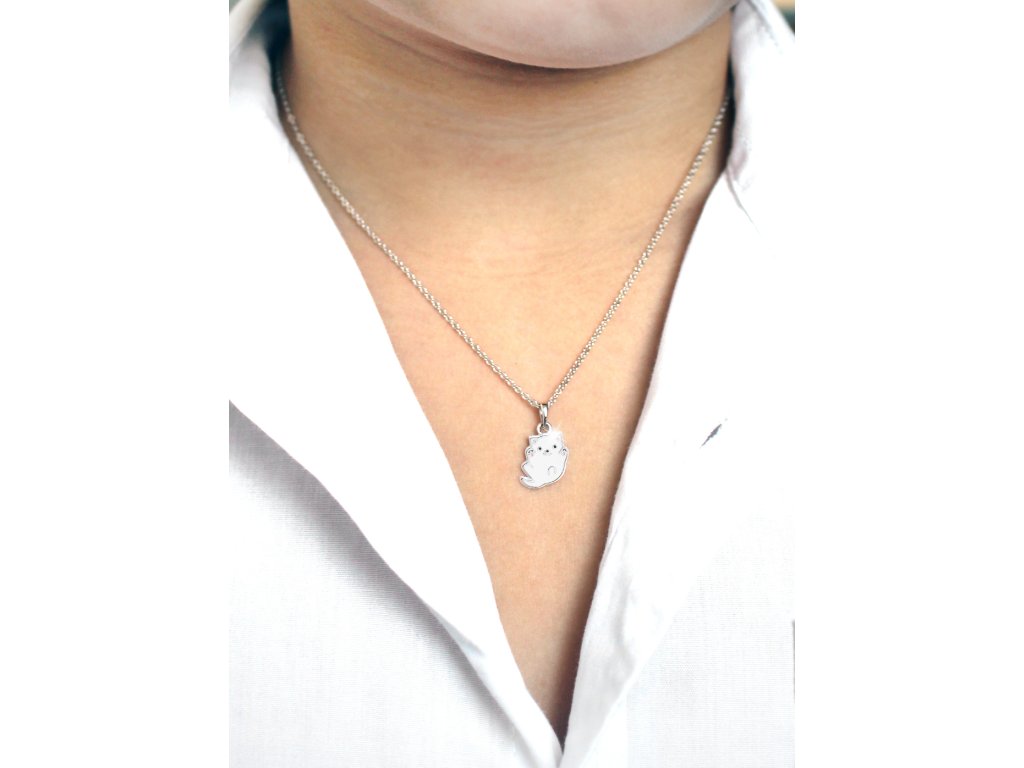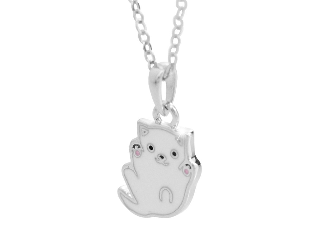 Stříbrný dětský náhrdelník kočička s barevným smaltem (Stříbro 925/1000)
