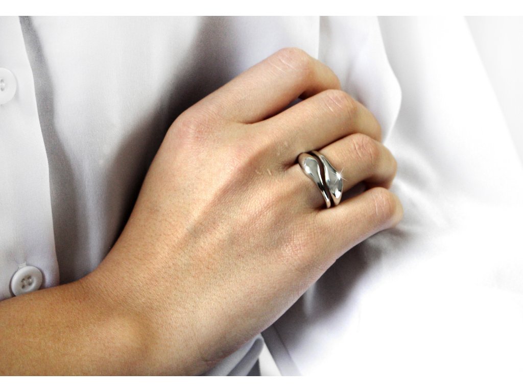 Stříbrný dvojitý prsten nepravidelného tvaru bez krystalů (Stříbro 925/1000)