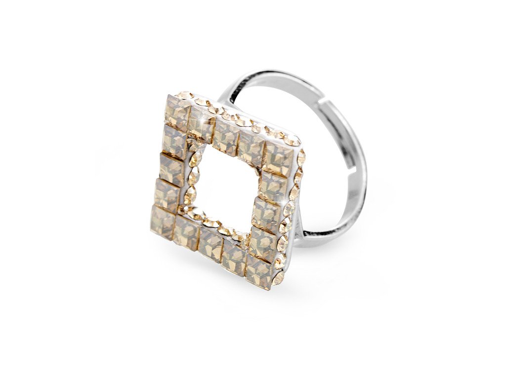 Stříbrný elegantní prsten čtverec z čtvercových krystalů Swarovski Golden Shadow (Stříbro 925/1000)