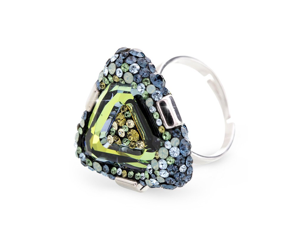 Stříbrný masivní prsten trojúhelník osázený krystaly Swarovski Sahara (Stříbro 925/1000)