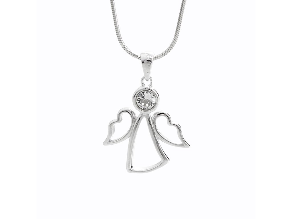 Stříbrný náhrdelník anděl s jedním krystalem Swarovski Crystal (Stříbro 925/1000)