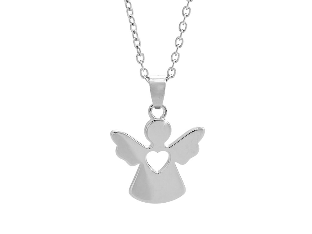 Stříbrný náhrdelník anděl s vyříznutým srdíčkem bez krystalů (Stříbro 925/1000)