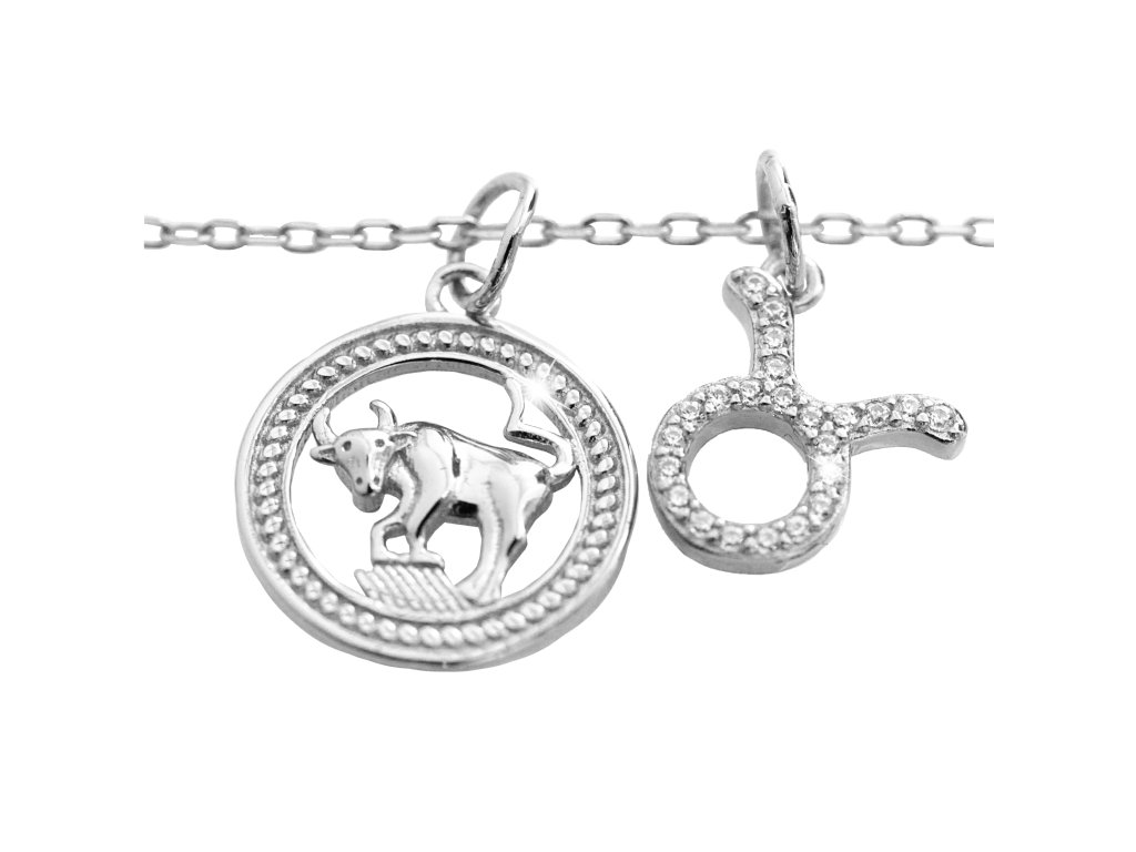 Stříbrný náhrdelník dva přívěsky znamení zvěrokruhu s Kubickými zirkony Býk (Stříbro 925/1000)