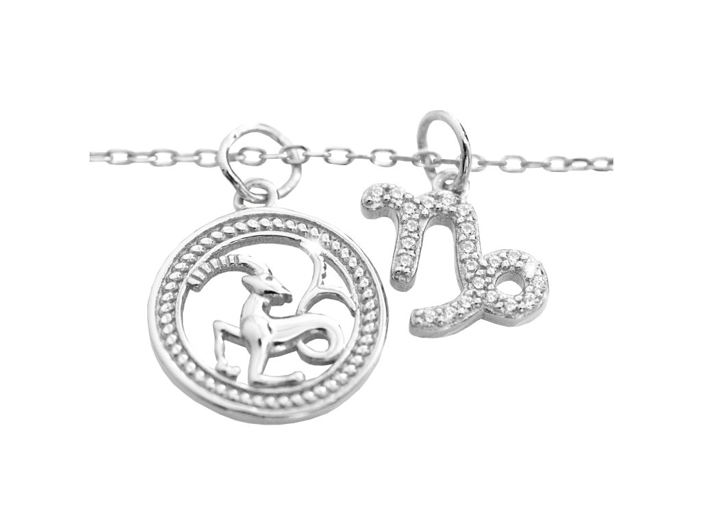 Stříbrný náhrdelník dva přívěsky znamení zvěrokruhu s Kubickými zirkony Kozoroh (Stříbro 925/1000)